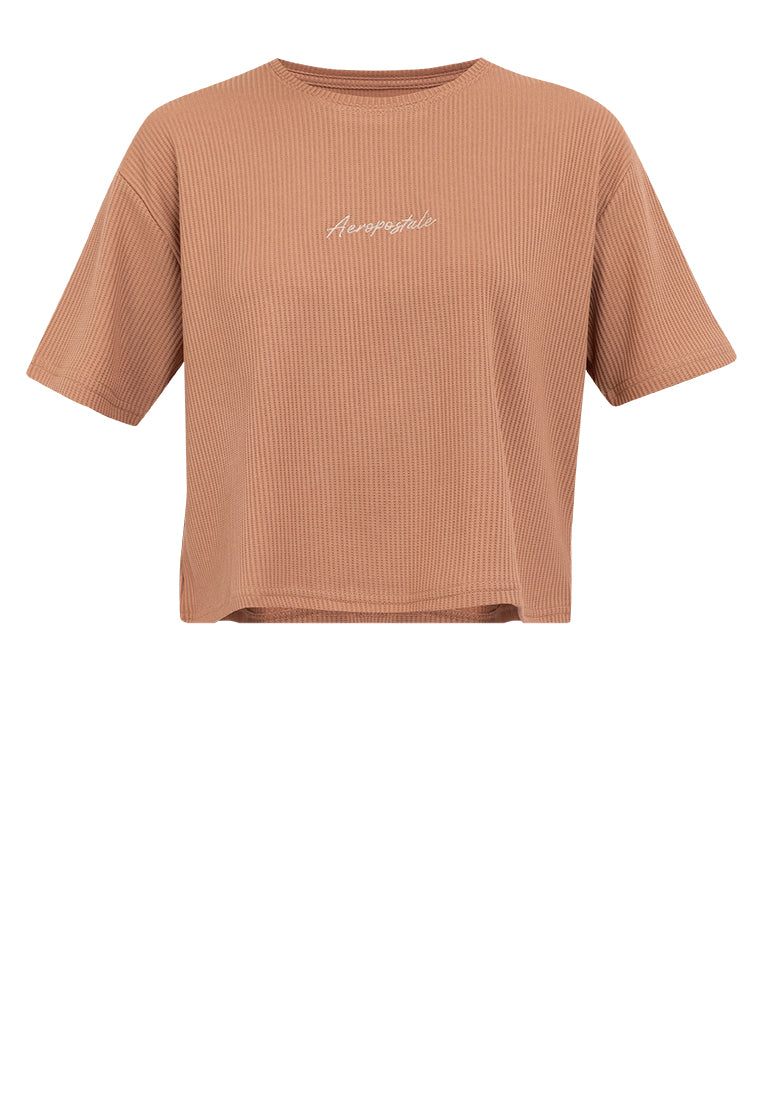 Expand your wardrobe rotation with Aeropostale's Logo Boxy Knit Tee, cut from waffle knit fabrication and finished with a branding script embroidery across the chest for a premium feel.