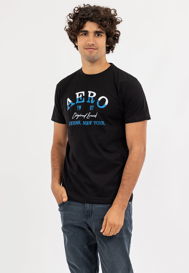 Expand your wardrobe rotation with Aeropostale's Men's Original Brand Graphic Tee, featuring a branding typography for added statement.