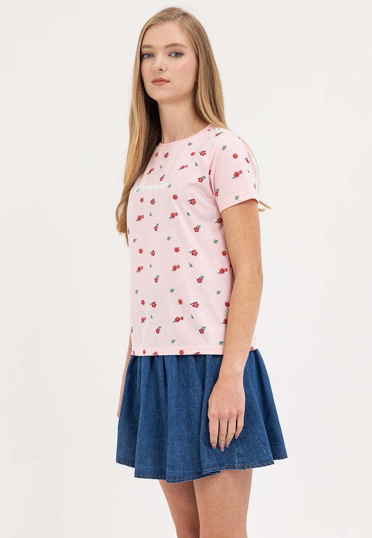 Expand your wardrobe rotation with Aeropostale's Ladies' All Over Print Tee, featuring an all-over floral motif, finished with a branding script across the chest for added appeal.
