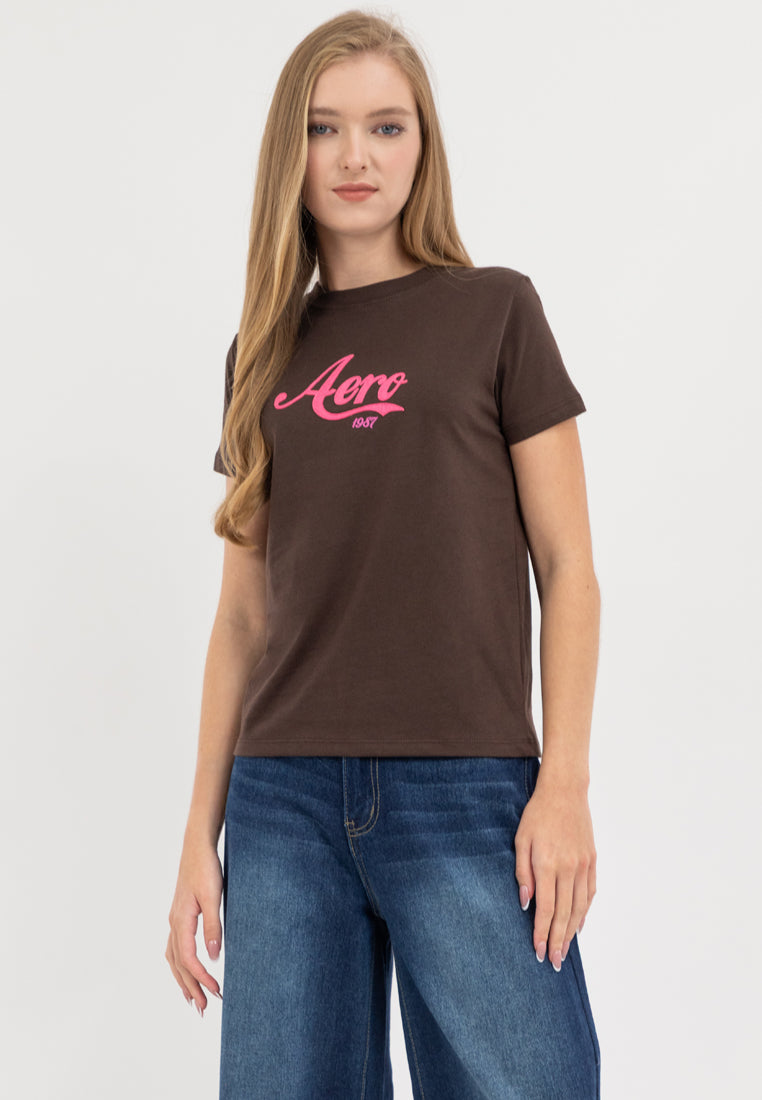 Expand your wardrobe rotation with Aeropostale's Ladies Applique Logo Graphic Tee, featuring a retro-inspired branding applique across the chest for added appeal.