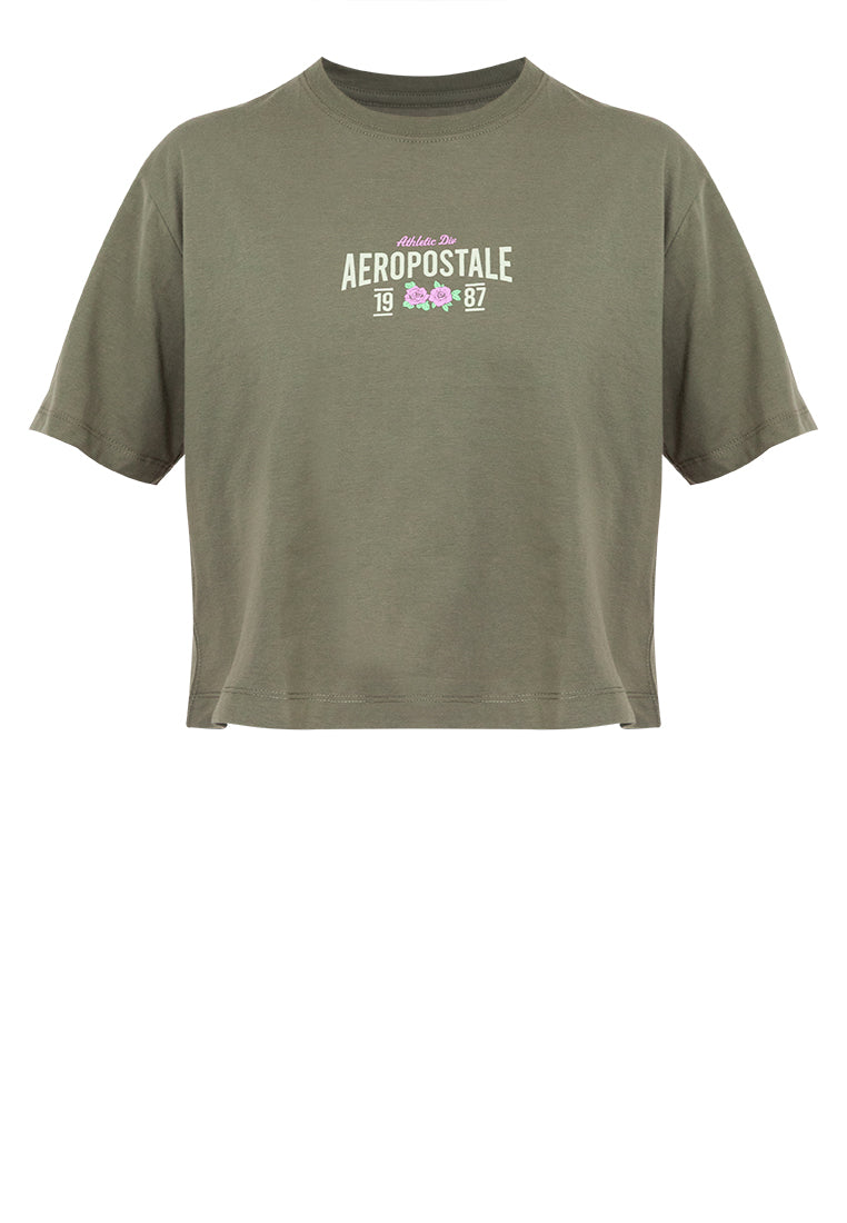 The Aeropostale Ladies Boxy Graphic Tee features a classic crew neckline, a boxy fit, and a contrast brand detail for everyday casual styling.