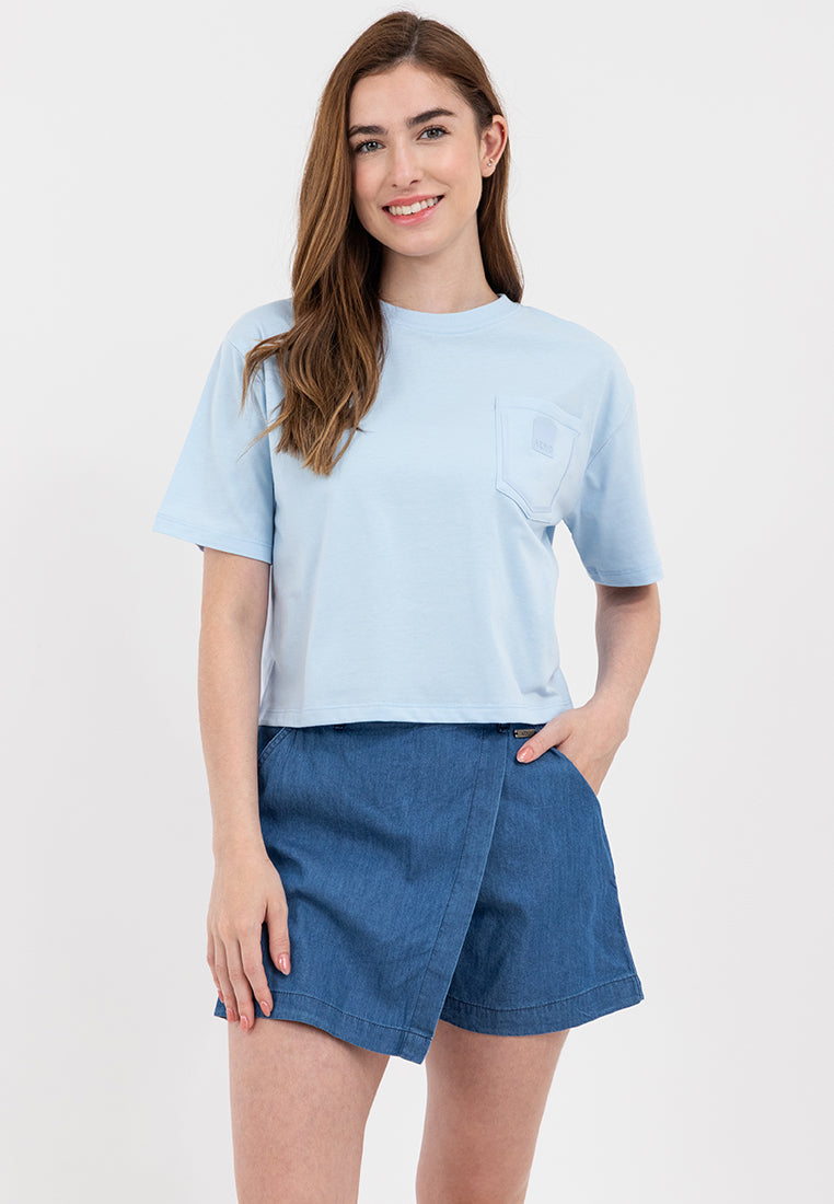 Update your wardrobe rotation with Aeropostale's Ladies Boxy Fit Logo Pocket Tee, featuring a boxy silhouette, finished with a chest pocket and tonal branding.